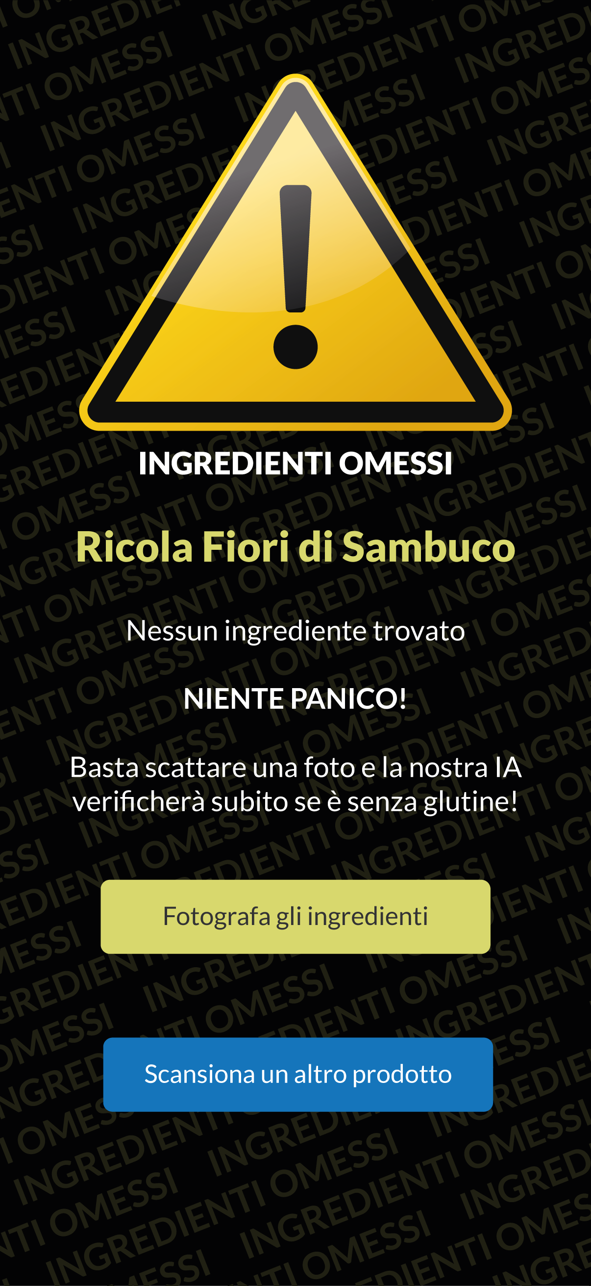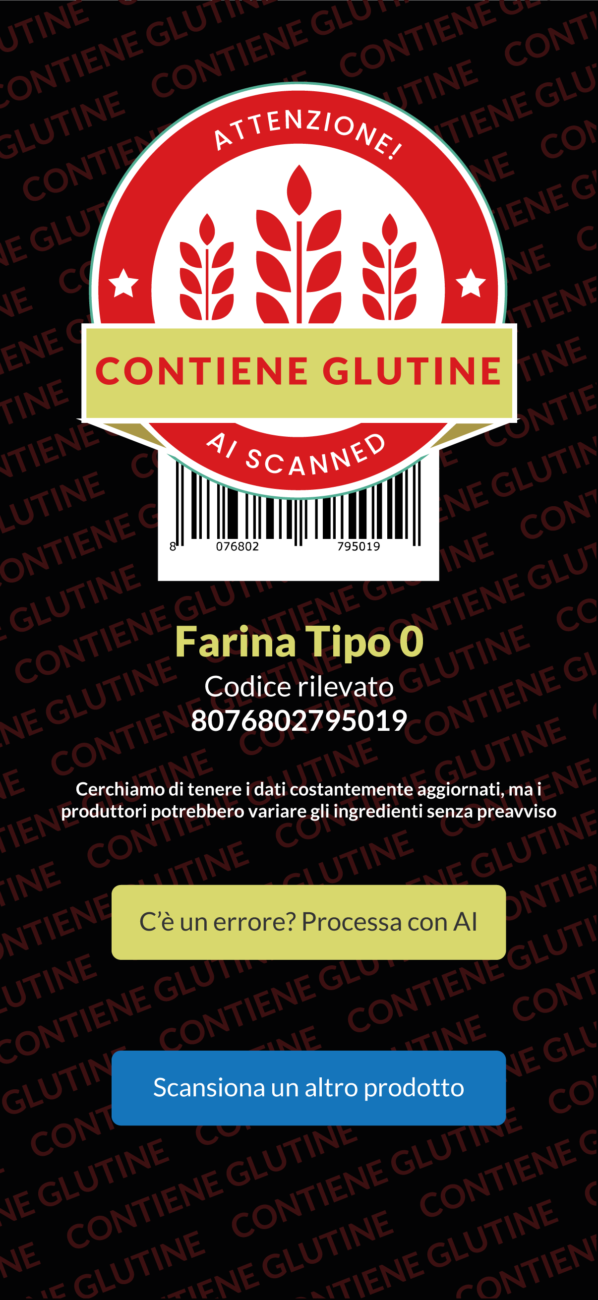 Se un prodotto non è ancora registrato o manca la sua catalogazione completa, basta scattare una foto all’etichetta degli ingredienti. Grazie ad avanzati algoritmi di computer vision e intelligenza artificiale, l’analisi avviene in tempo reale, determinando immediatamente la presenza di glutine e aggiornando il database senza attese.